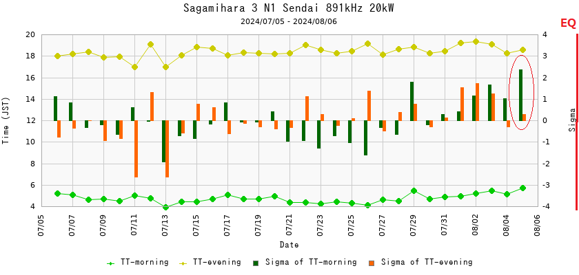 ・8/5の朝のTTが札幌を除くすべてのPathで同期してσが+2を超えている