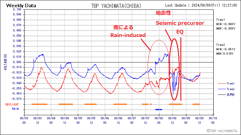 6.千葉県八街観測点における植物生体電位異常Data→日Data 週間Data