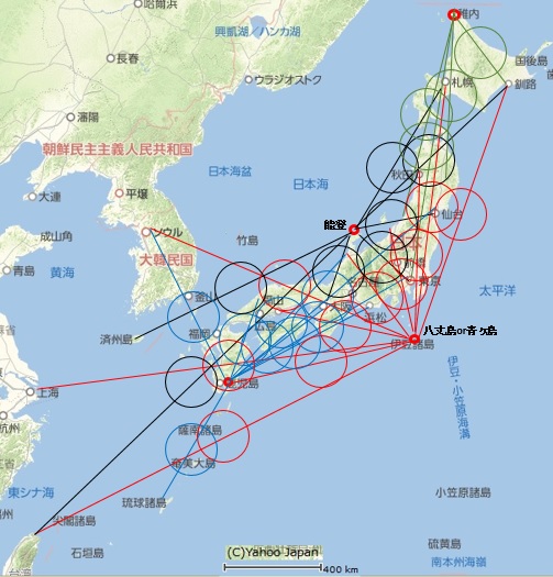 稚内、八丈島、能登半島、鹿児島の4カ所に観測点を設置すればほぼ日本の全域をカバーできます。